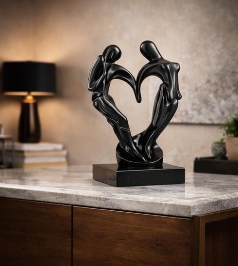 Celebrate love and artistry with this striking abstract couple heart sculpture. Crafted with contemporary design sensibilities, this showpiece seamlessly blends two silhouettes into an intertwined heart form, symbolizing connection and romance. Perfect for living rooms, bedrooms, or intimate spaces, it serves as a conversation starter while adding sophistication to your décor. The minimalist aesthetic complements modern, eclectic, and transitional interiors alike. Whether displayed on shelves, mantels, or side tables, this sculpture transforms any room into a gallery of personal expression. An ideal gift for couples, anniversaries, or anyone who appreciates meaningful home art.