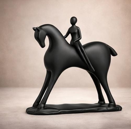 Elevate your space with this striking minimalist horse and rider sculpture. Crafted with clean lines and contemporary design, this black equestrian figurine brings sophisticated elegance to any room. Perfect for modern interiors, shelves, or display cabinets, it captures the grace and movement of horsemanship in an understated aesthetic. A timeless accent piece for art collectors and horse enthusiasts alike.